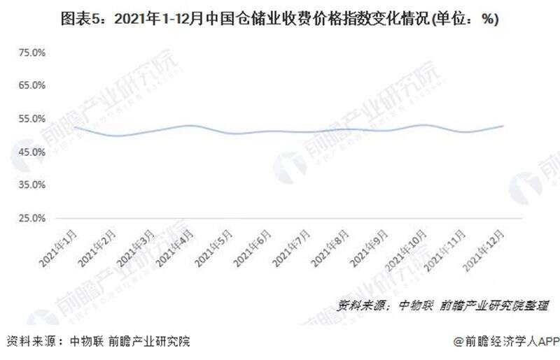 2021年,收費價格指數(shù)均值為51.7%,高于2020年1.6個百分點,指數(shù)連續(xù)十六個月未落入榮枯線以下,表明倉儲業(yè)務(wù)收費價格保持上升勢頭。