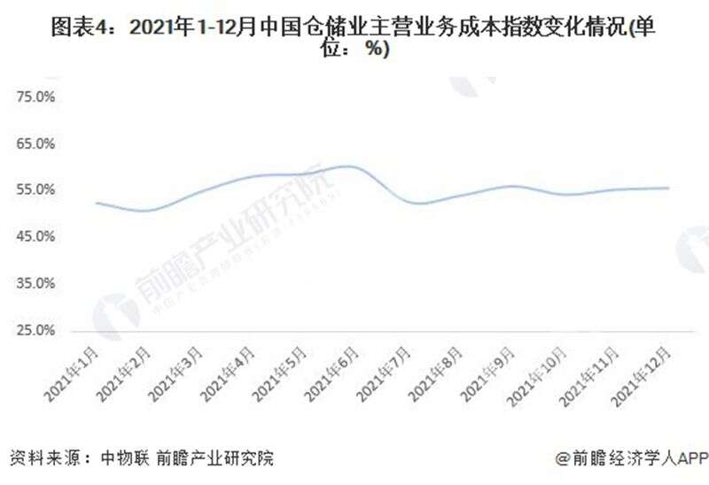 根據(jù)中國物流與采購聯(lián)合數(shù)據(jù),2021年1-12月,中國倉儲業(yè)主營業(yè)務(wù)成本指數(shù)均值為55.3%,同比增長3.1個百分點,顯示2021年倉儲行業(yè)成本支出增速有所提升,企業(yè)經(jīng)營壓力較大,倉儲行業(yè)降本增效仍需進(jìn)一步夯實。